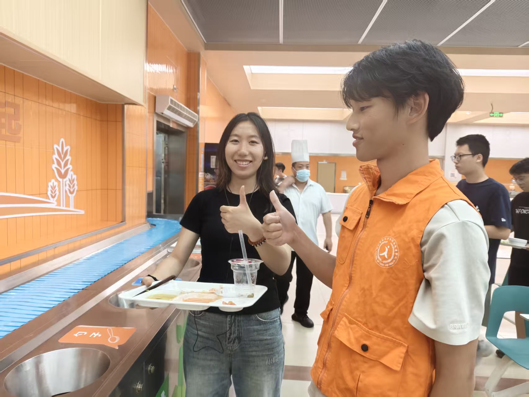 世界粮食日当天,志愿者在东湖食堂内开展“光盘达人”寻访活动,记录师生“光盘”心得。学院团委、学生会将“按食量少取多次”等实践经验梳理为图文小贴士制作成宣传手册供现场阅览。活动收获一致好评,师生纷纷与现场的“生态倡议员”合影留念。同学们表示,后续将结合自身食量按需购买,让“光盘”从口号变成餐桌上的生活常态。