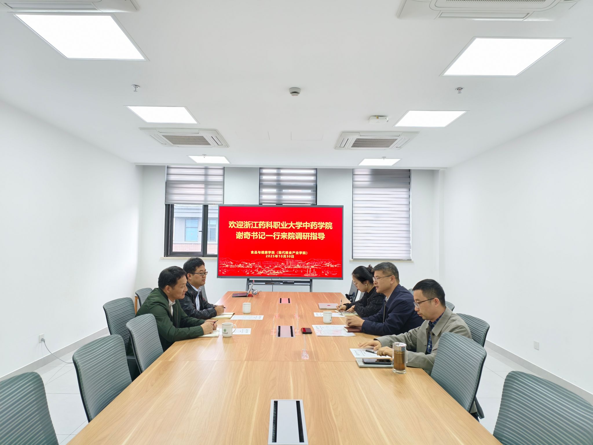 10月30日上午,浙江药科职业大学中药学院党委书记谢奇一行来食健学院座谈交流,围绕党建联建、研究生人才培养等主题展开交流。食健学院党委书记朱军,学院分管工作负责人及中药学科研究生教育负责人参与座谈。