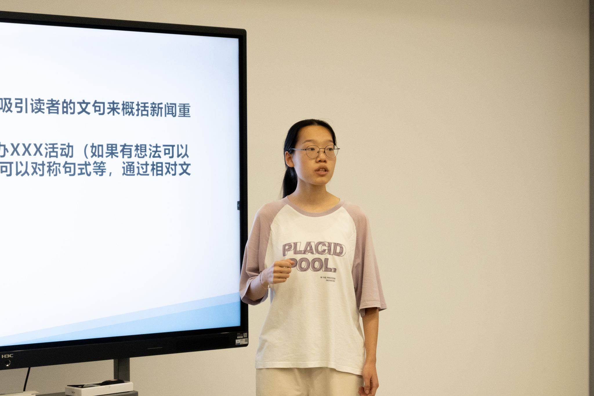 社会实践部负责人进行安全教育培训,为同学们敲响安全警钟,将“安全第一”深植于心。新闻编辑部负责人为大家梳理新闻稿撰写要点,讲解如何捕捉实践亮点,用文字和镜头记录精彩瞬间。