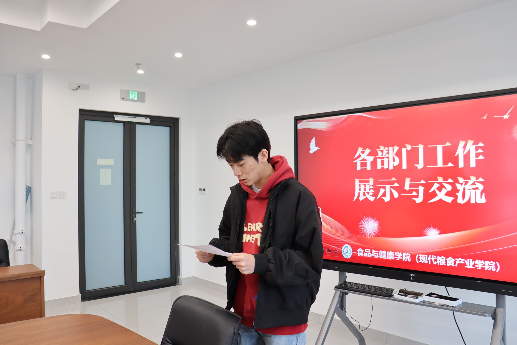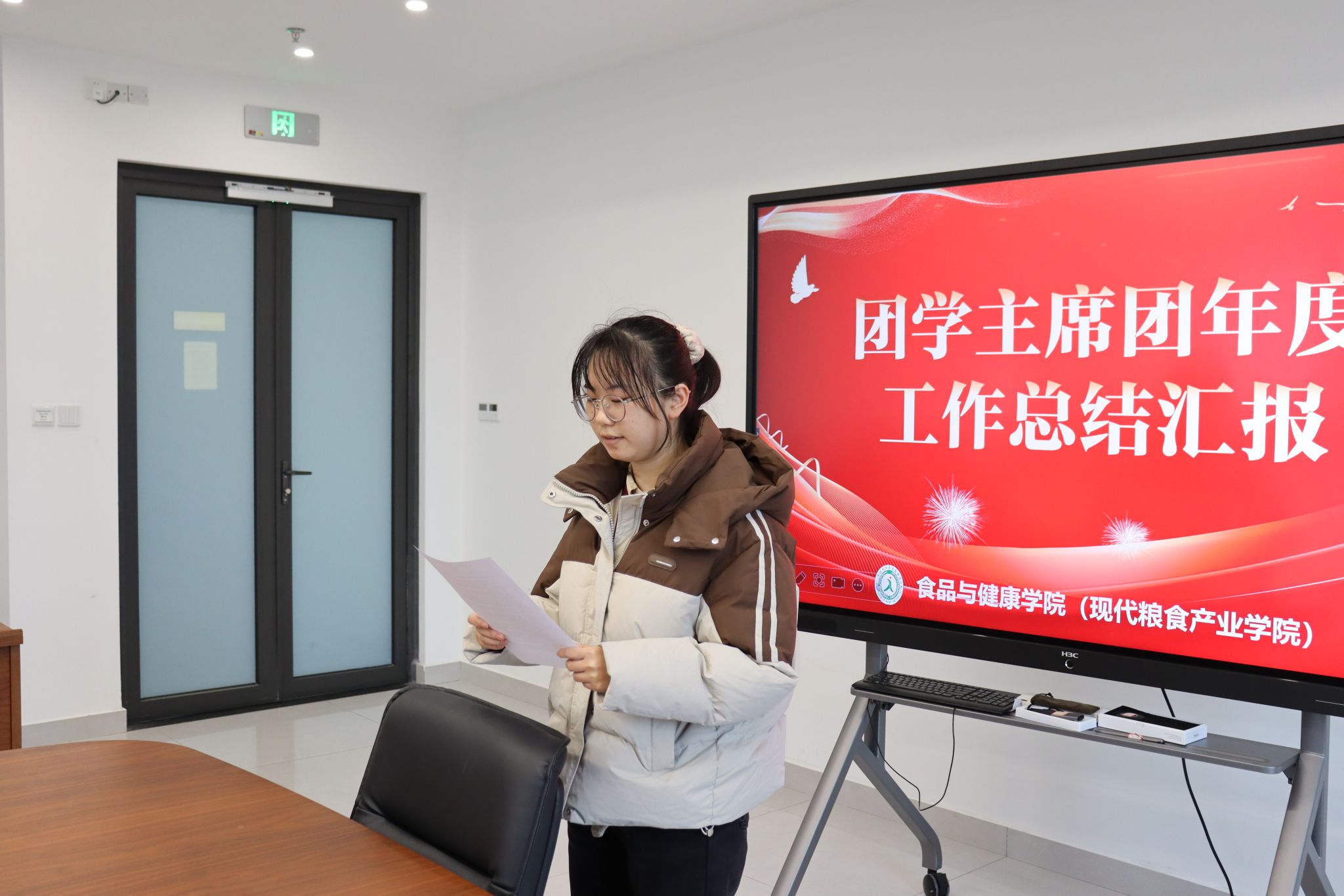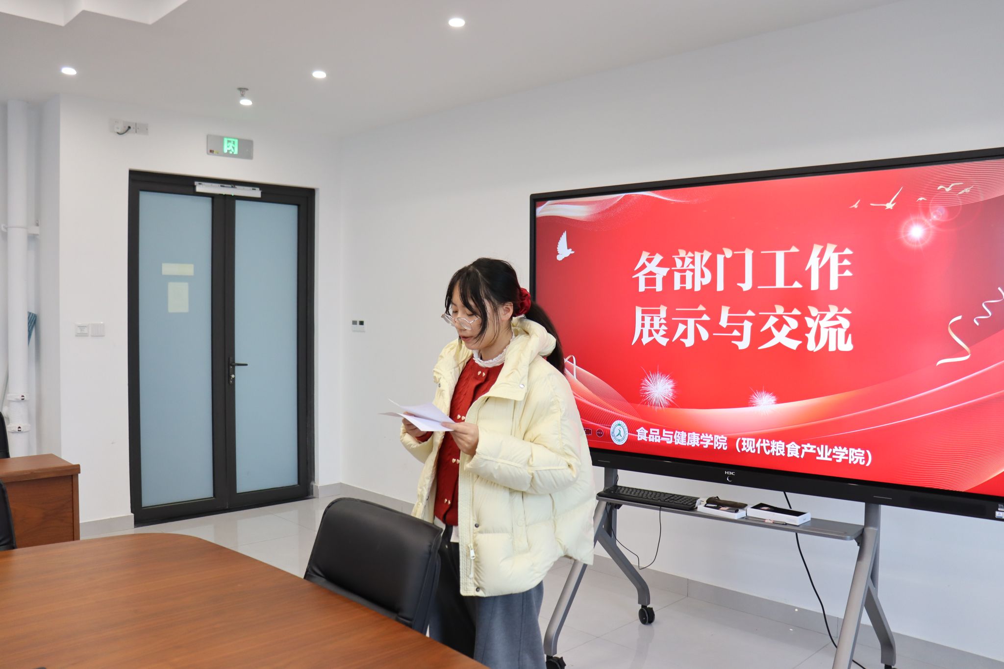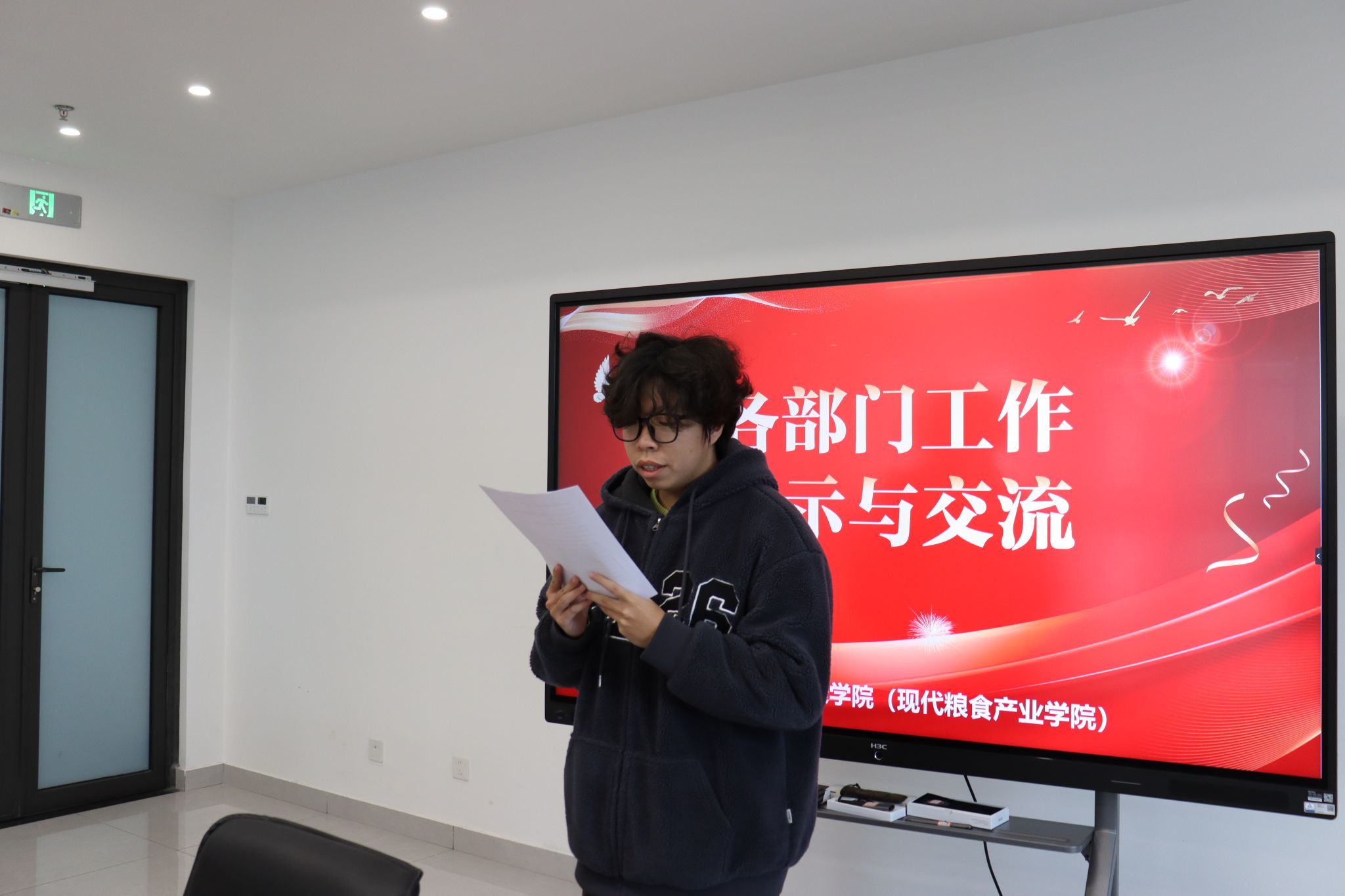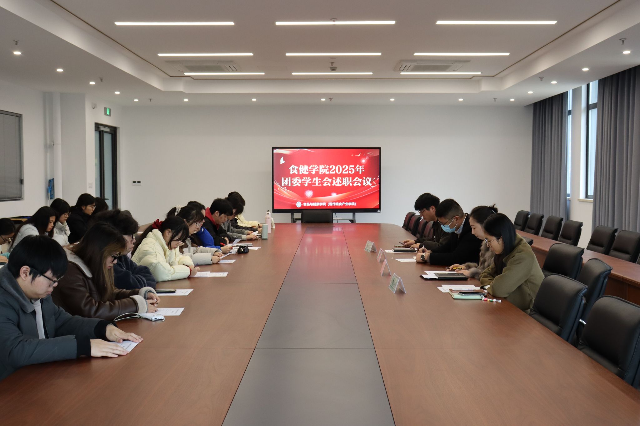 为系统总结本年度团学工作成效,加强组织建设与内部交流,科学规划未来发展,食品与健康学院于12月8日顺利开展团委、学生会2025年度述职评议。学院党委副书记黄可盛、团委书记李可馨、学生会秘书长张吕浩、全媒体中心指导老师刘心凝出席,学院团学主席团及各部门负责人参会。