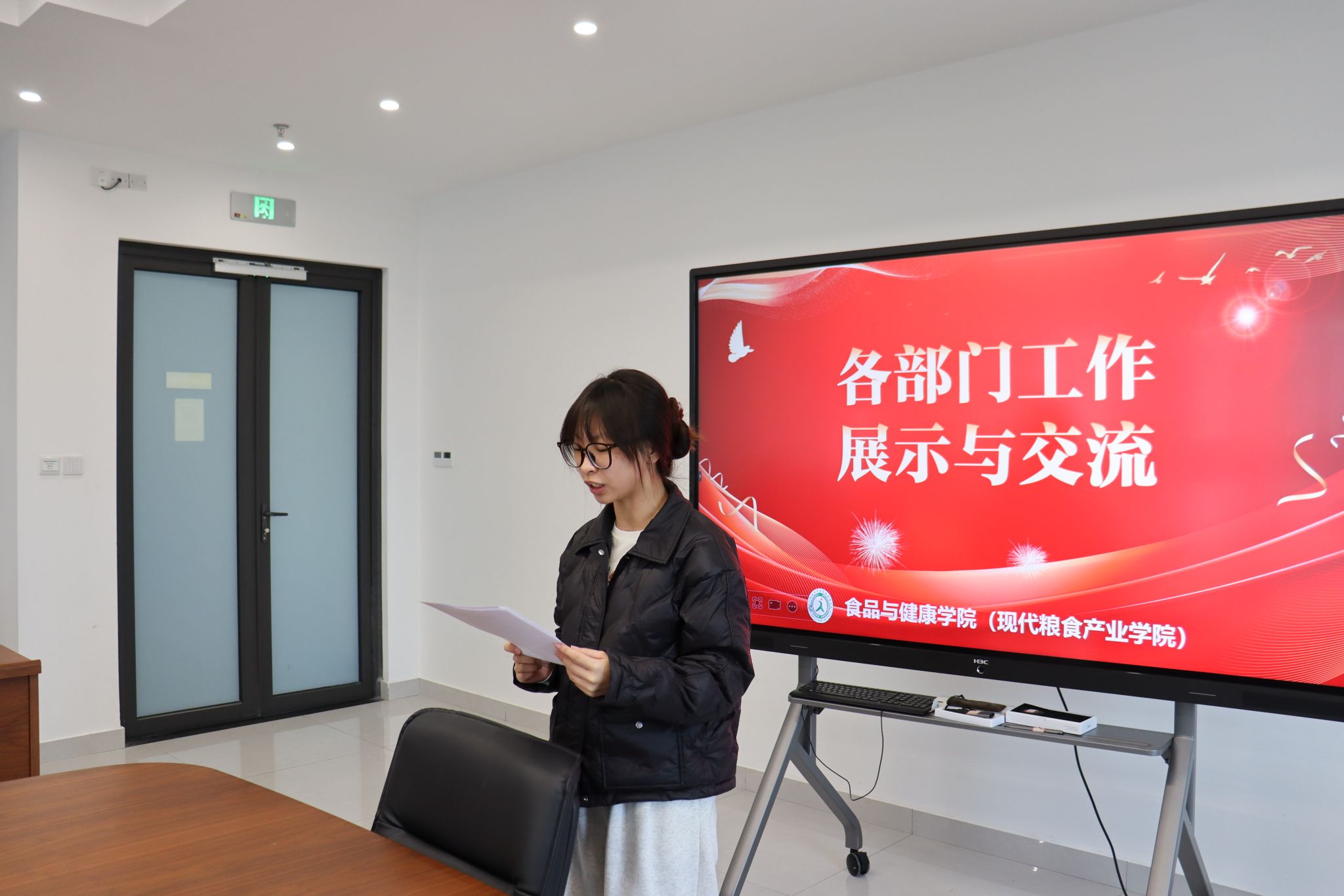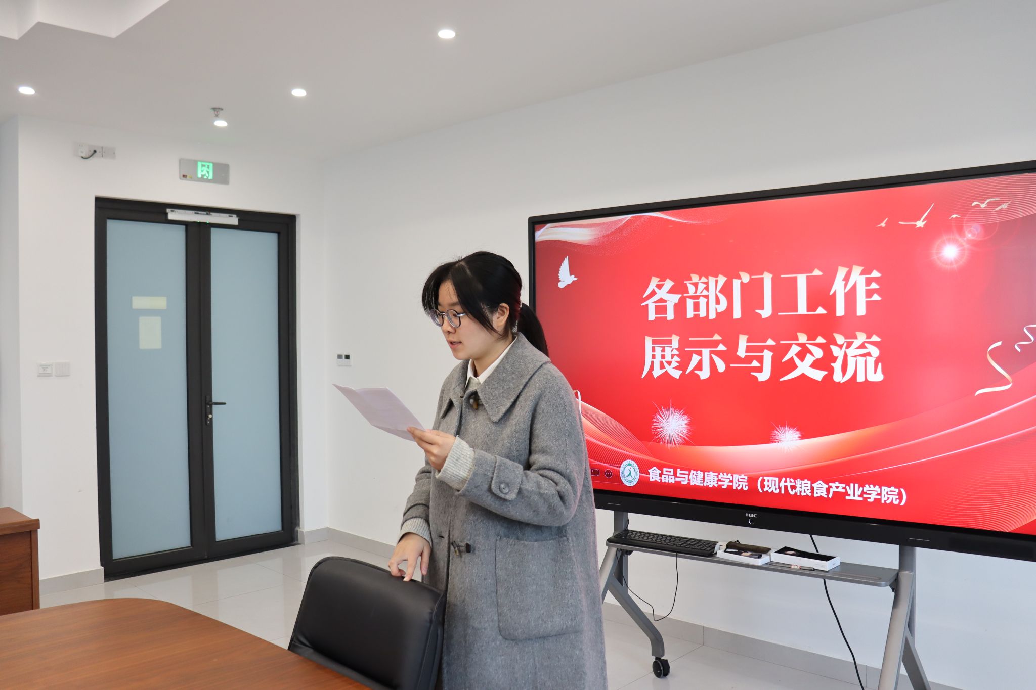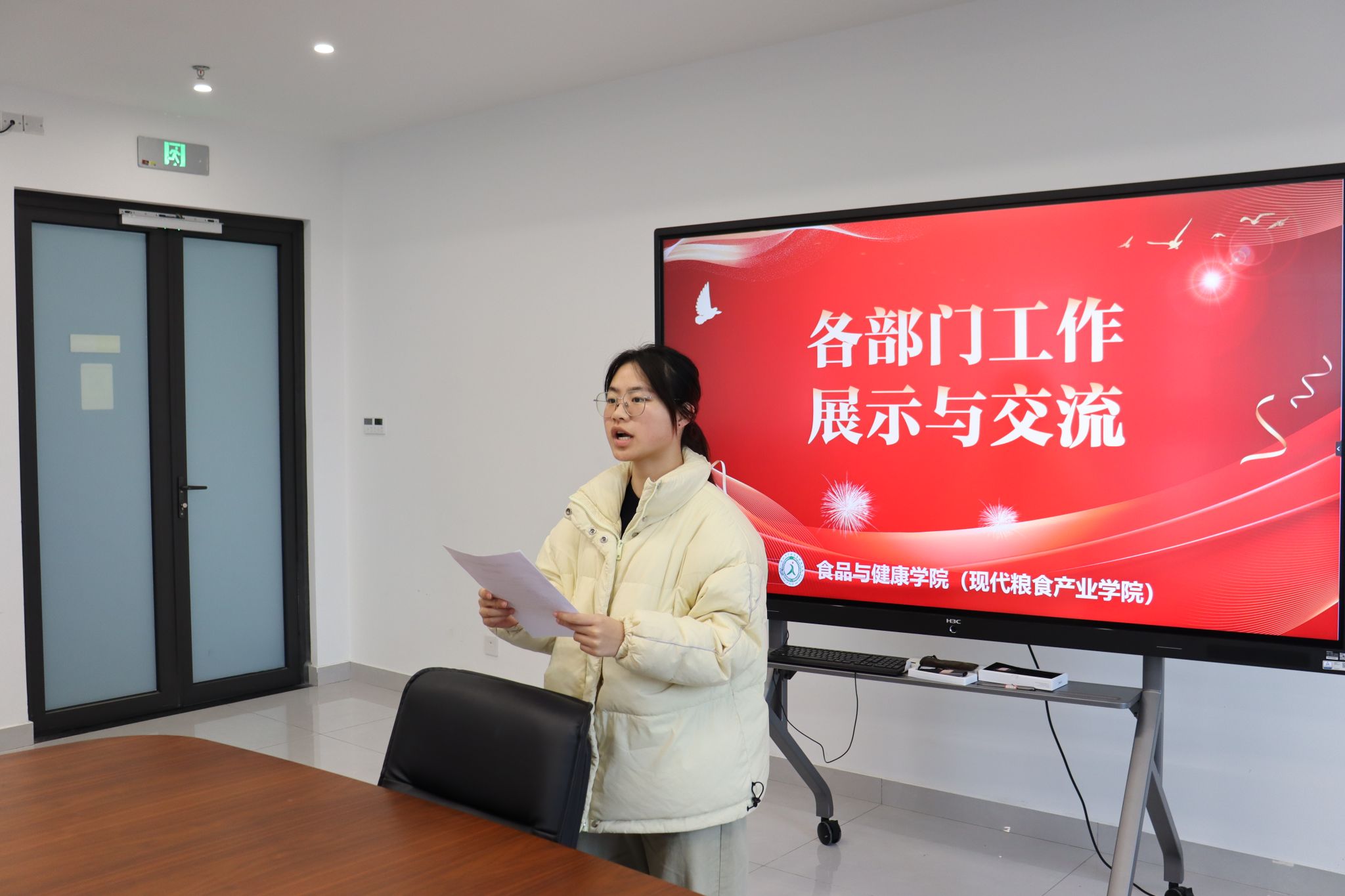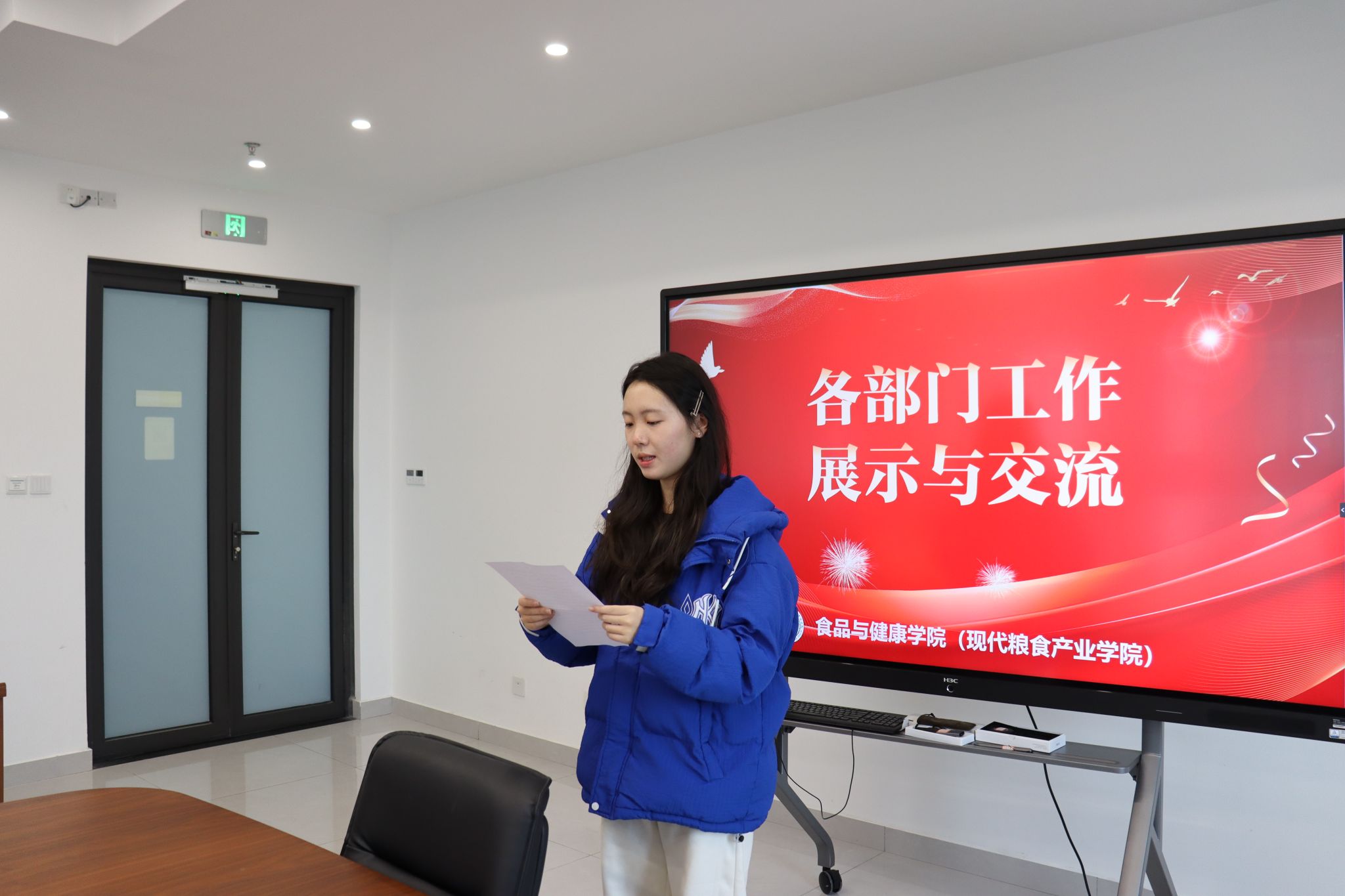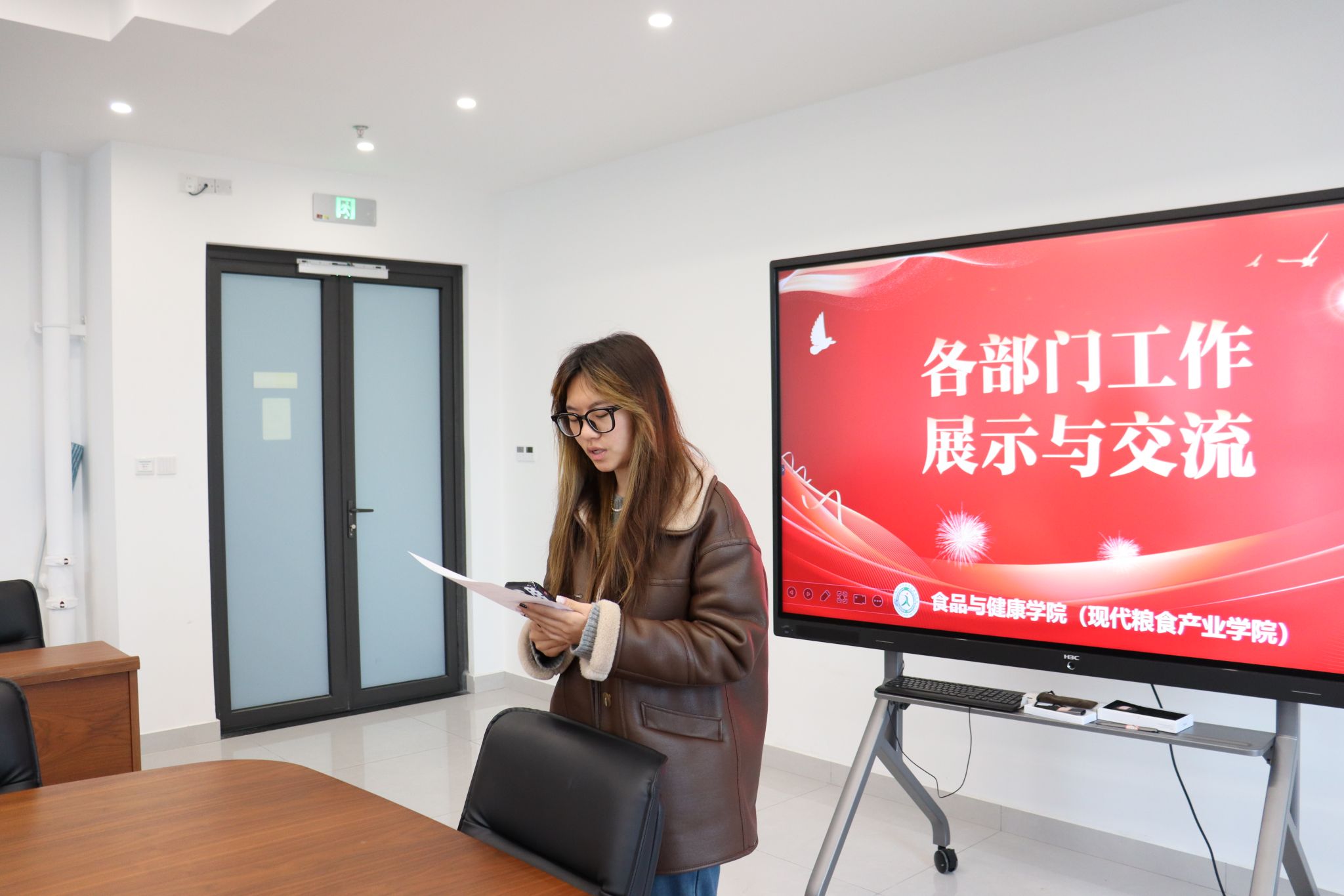 为系统总结本年度团学工作成效,加强组织建设与内部交流,科学规划未来发展,食品与健康学院于12月8日顺利开展团委、学生会2025年度述职评议。学院党委副书记黄可盛、团委书记李可馨、学生会秘书长张吕浩、全媒体中心指导老师刘心凝出席,学院团学主席团及各部门负责人参会。