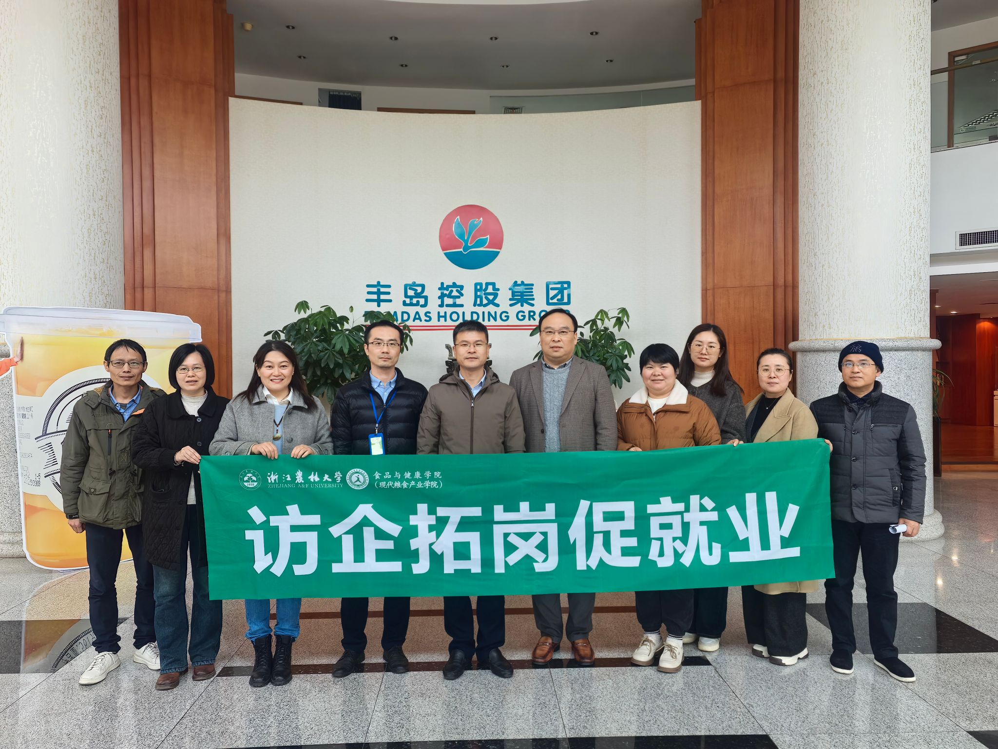 为深入贯彻落实高校毕业生就业工作部署,深化产教融合与校企合作,12月5日上午,食品与健康学院党委书记朱军率队走访国内知名食品企业——丰岛控股集团有限公司,开展“访企拓岗促就业”专项行动。双方通过实地考察、深入交流与专题座谈,共商人才培养新路径,共拓就业新空间。