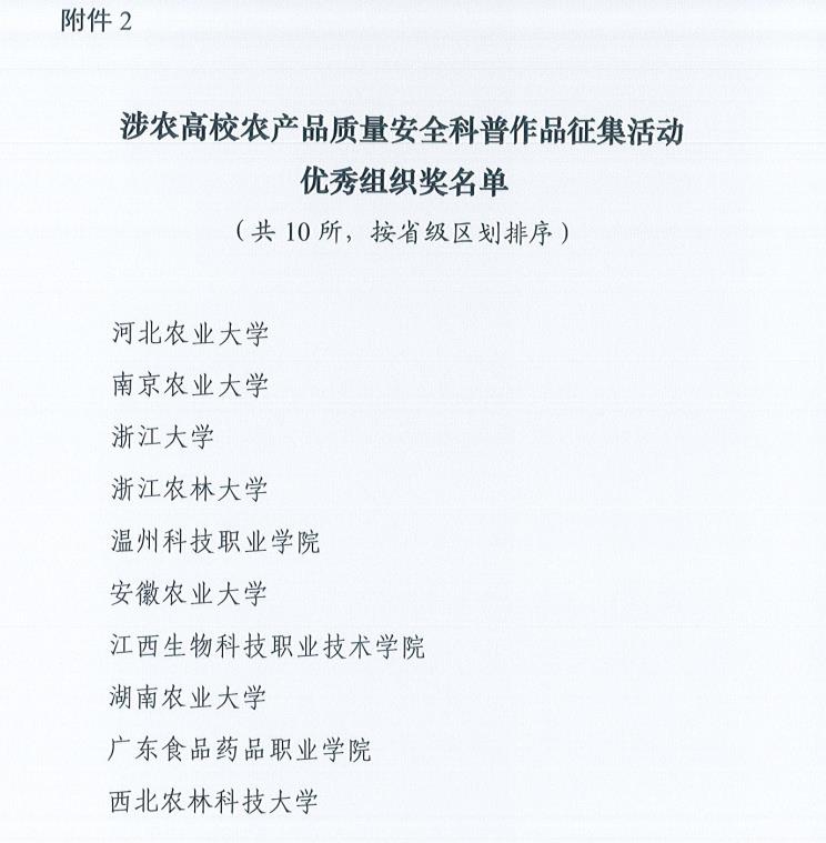 近日,农业农村部农产品质量安全监管司主办的“涉农高校农产品质量安全科普作品征集活动”评选结果揭晓。食健学院师生积极参与并表现出色,共斩获三等奖、优秀奖各1项,我校荣获“优秀组织奖”。