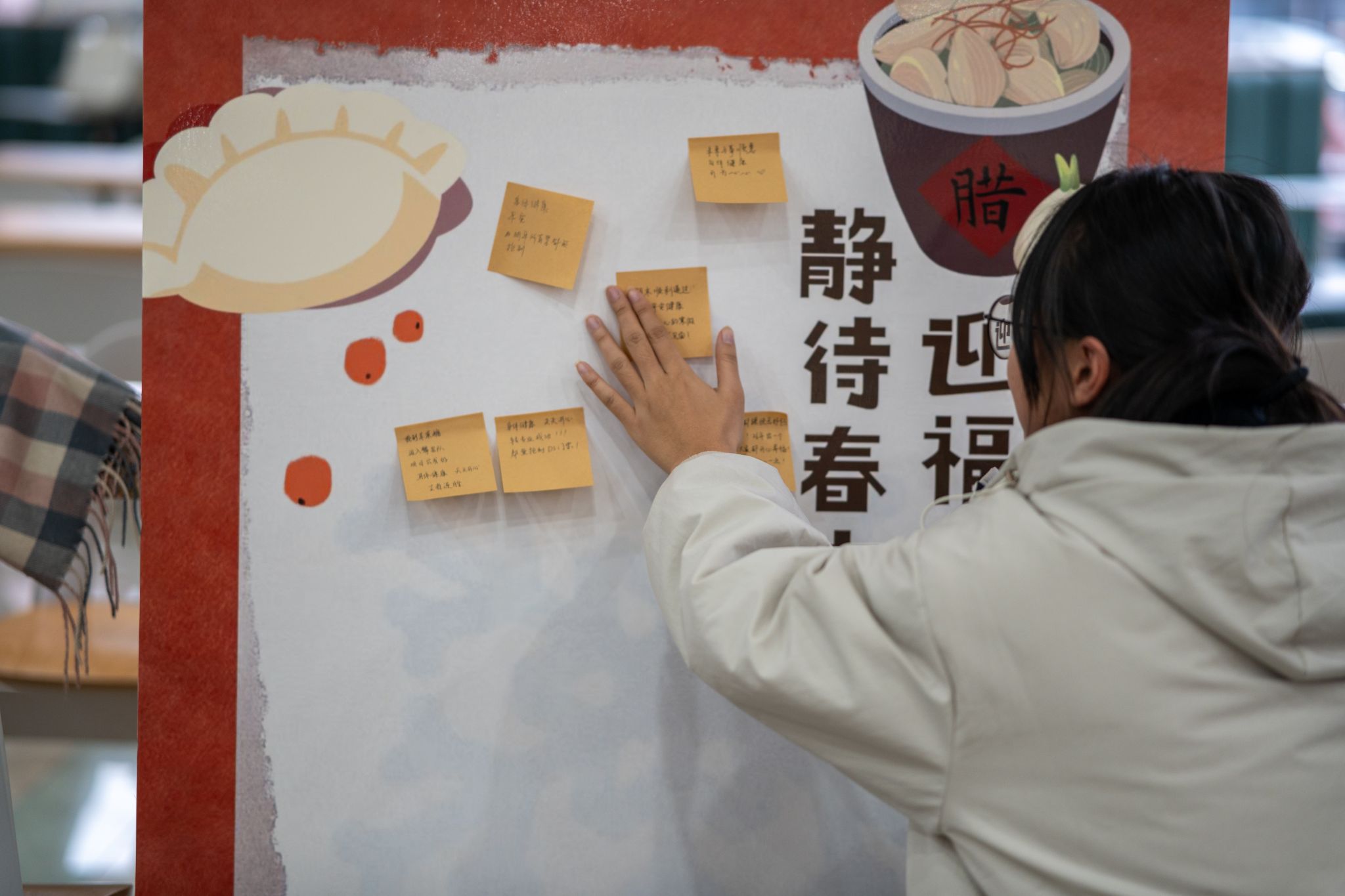 包饺子的间隙,同学们将心底的牵挂与祝福诉诸笔端,有人祈愿家人平安康健,有人期许新岁事事如意。一张张承载着深情厚谊的冬至祝福卡片饱含对生活的热爱。