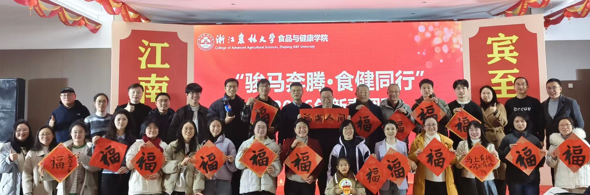 骏马迎春,扬蹄奋志。为营造喜庆祥和的节日氛围,丰富教职工业余文化生活,增进团队凝聚力,1月21日,食健学院在西径三楼隆重举办“骏马奔腾·食健同行”2026年新春团拜活动。全院教职工欢聚一堂,畅叙情谊、共话发展,在温馨热烈的气氛中互致新春祝福,凝聚前行力量,携手迎接新的一年。