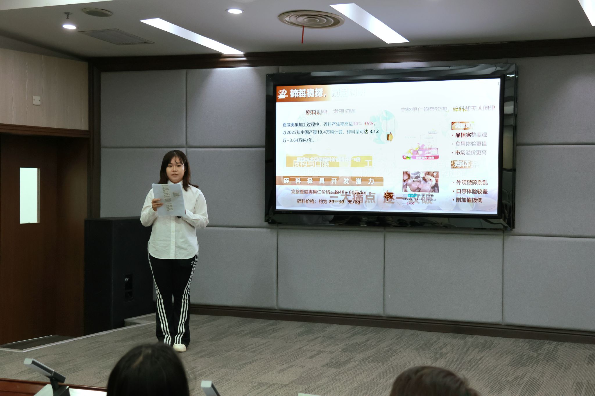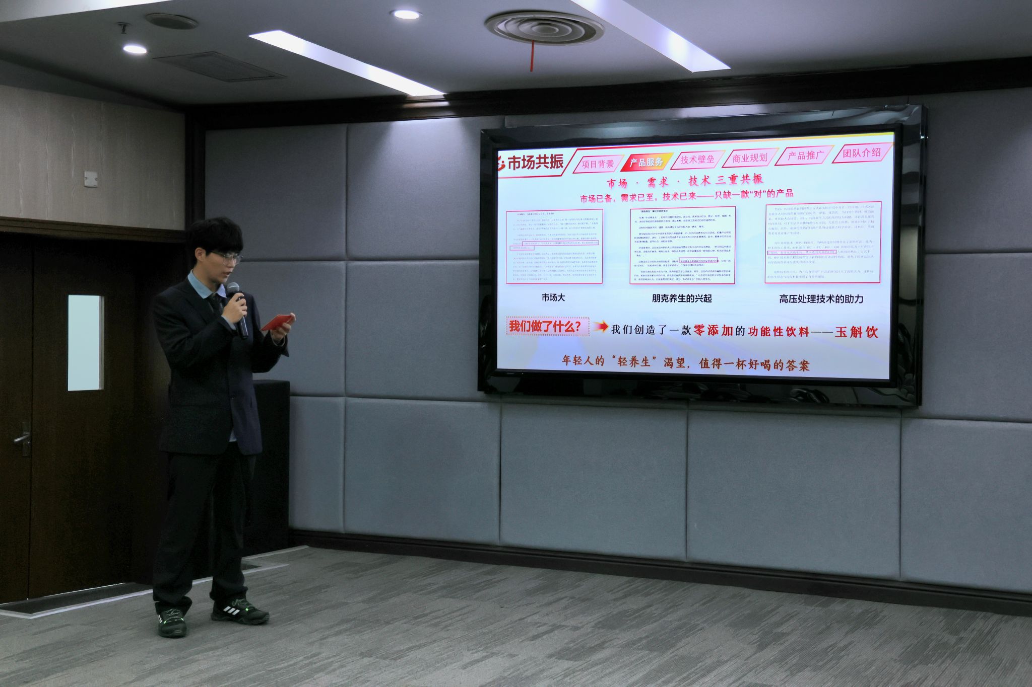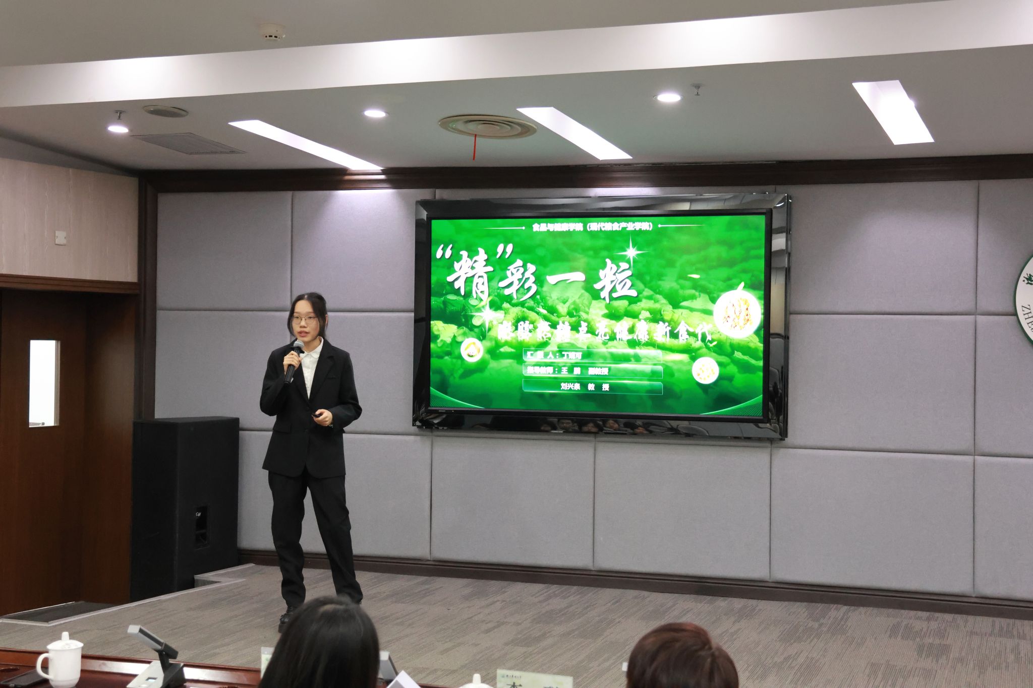 本次大赛分为本科生创意赛道、红旅赛道及研究生创意赛道三个组别,参赛项目紧扣时代发展与专业特色,覆盖乡村振兴、食品健康、药食同源等重点领域,共有13支参赛队伍依次登台答辩。各团队通过“路演展示+现场答辩”的形式,围绕项目背景、技术创新、市场前景、社会价值等核心内容进行系统阐述。评委老师们结合项目实际,针对性开展提问交流,并在选题聚焦、方案优化、短板补齐、成果落地等方面提出专业指导意见。