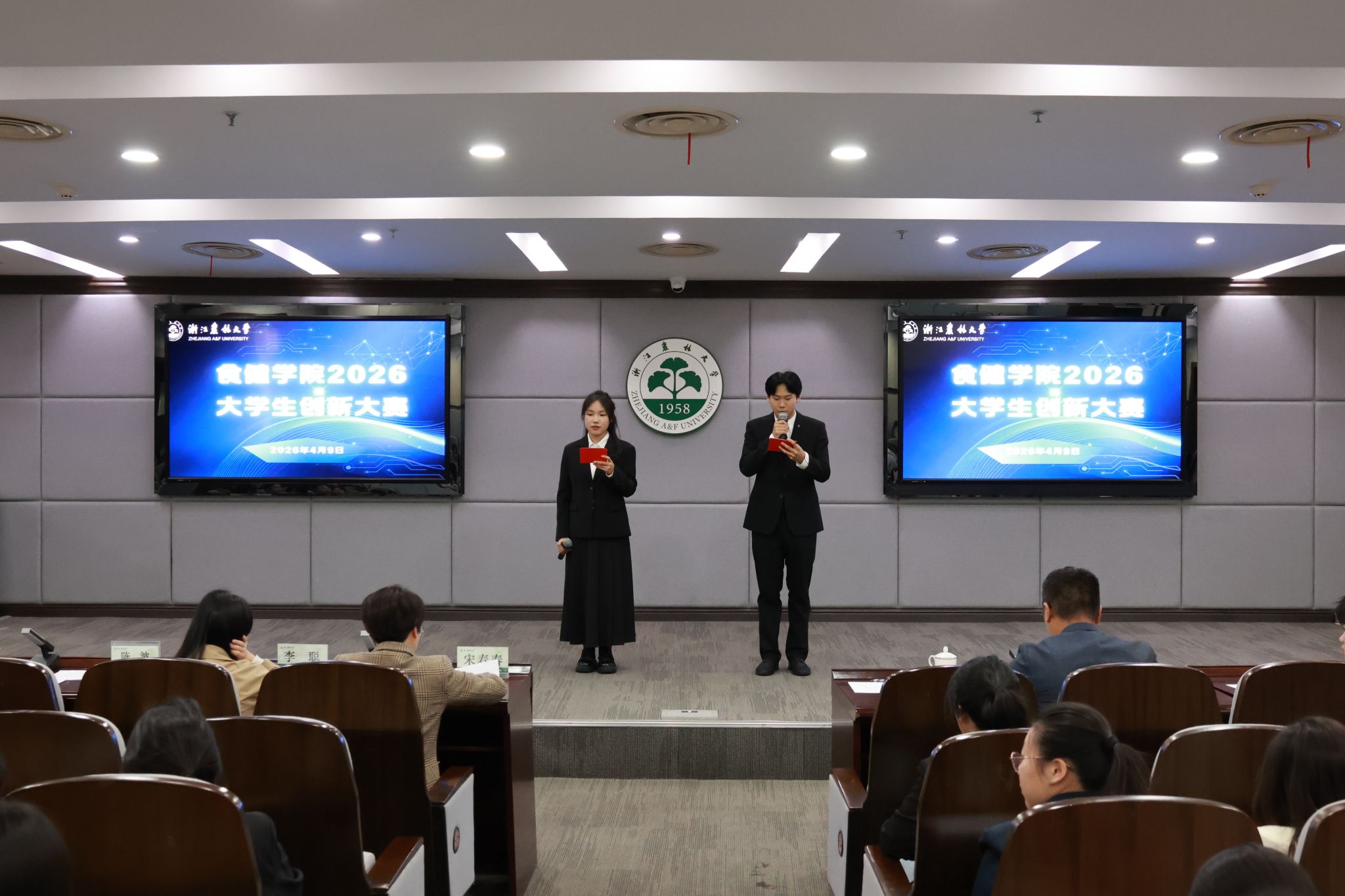 近日,浙江农林大学食品与健康学院(现代粮食产业学院)2026大学生创新大赛顺利举办。活动邀请现代农学院党委副书记宋春春、林业与生物技术学院学术副院长李聪、集贤学院创业实训中心老师陈波担任评委。学院学生工作负责人、辅导员出席本次大赛。