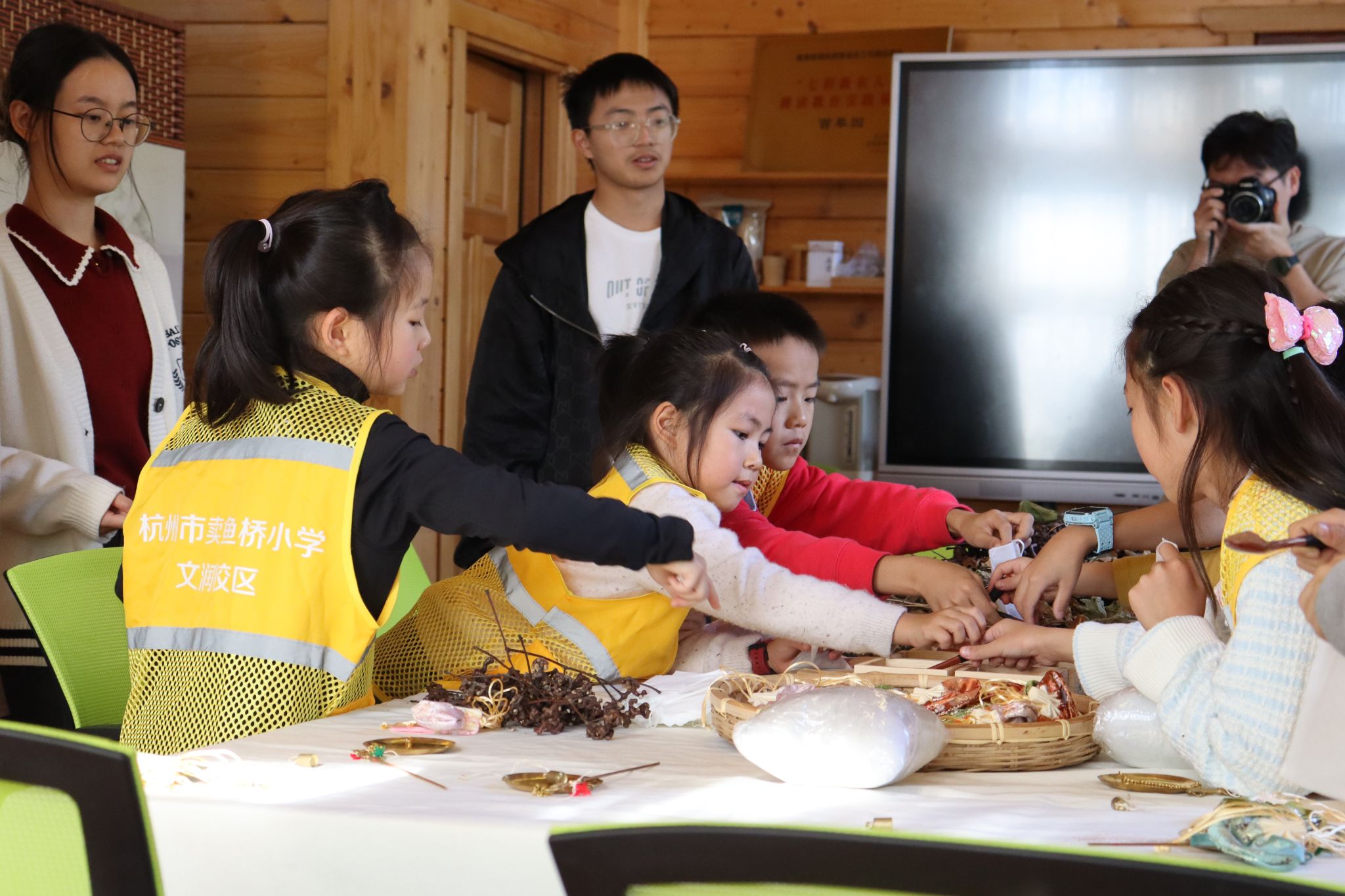 11月15日下午,食健学院心理辅导站携手卖鱼桥小学,邀请一年级学生及家长在浙江农林大学百草园小木屋参与中药材科普暨香囊制作体验活动。本次活动以“识药材、制香囊、传文化”为主题,将专业的中药材科普课堂与趣味手工实践相结合,更创新性融入心理调节相关知识,打造了一场“中医药+心理”的沉浸式文化体验之旅。