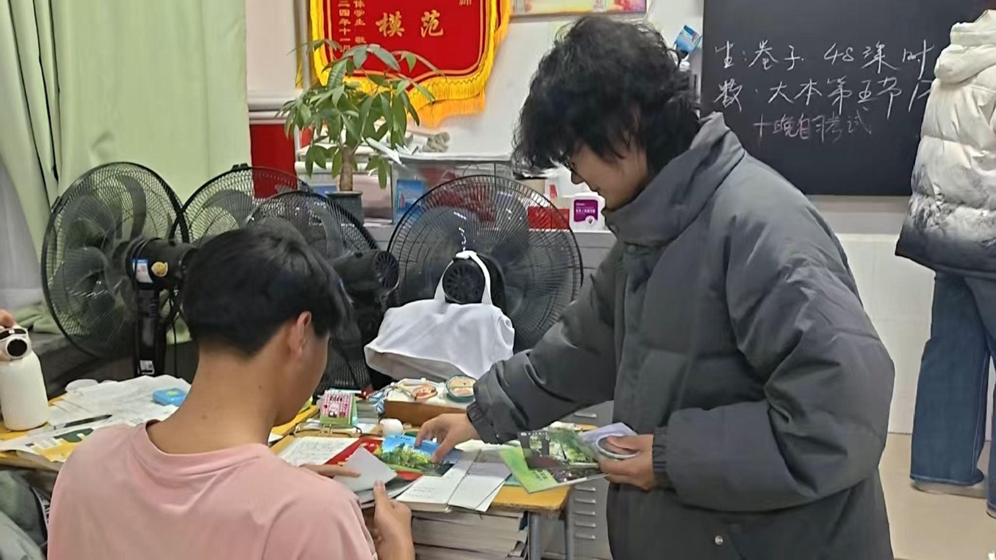 实践团成员将招生简章、专业介绍手册及富有特色的校园文创产品分发给在场同学,并就校园生活、就业前景等问题与同学们进行了深入交流。团队成员结合自身的学习经历和成长体会,耐心细致地回答学弟学妹的每一个问题,并给出切实可行的备考建议。